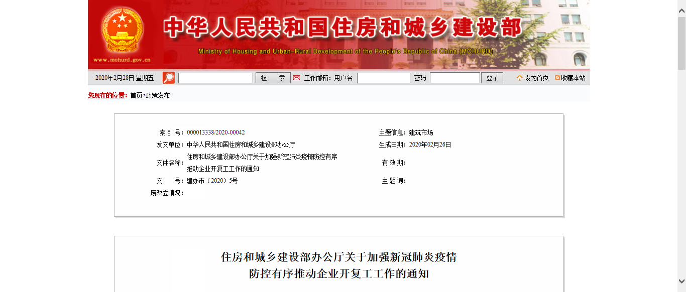 住房和城鄉(xiāng)建設部辦公廳關于加強新冠肺炎疫情防控有序推動企業(yè)開復工工作的通知...