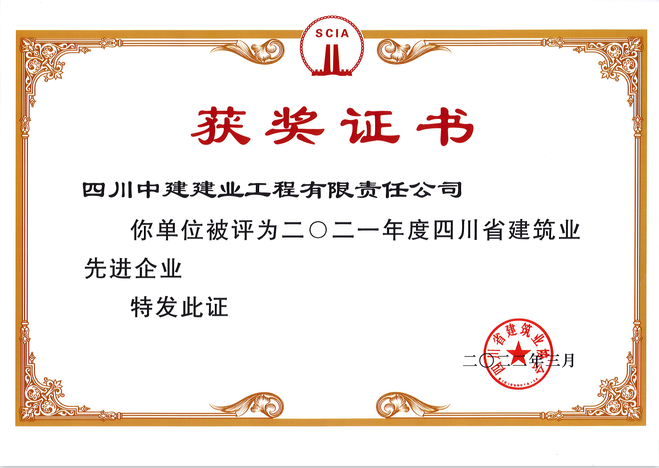 近日,四川省建筑業協會發文表彰了一批2021年度四川省建筑業“先進企業”和四川省建筑業“企業優秀經理”及“項目經理”,四川中建建業工程有限責任公司榮獲四川省建筑業“先進企業”稱號,公司董事長何正剛榮獲四川省...