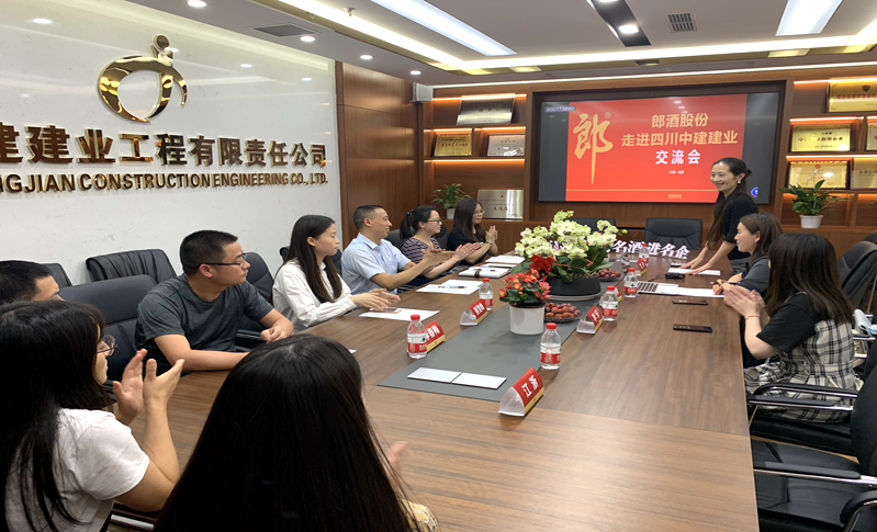 2020年5月29日,名酒進名企—郎酒股份走進四川中建建業交流會,在四川中建建業會議室舉行。郎牌特曲仁岸酒業總經理助理劉丹、郎酒股份王俊梅、李樂一行到四川中建建業座談交流。