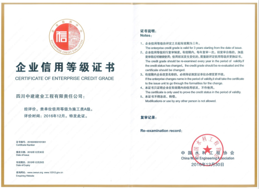 我公司被水利部評為2016年水利建設市場主體信用A級單位