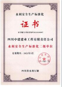 經四川省水利安全生產標準化評審委員會審定,我司被評為
